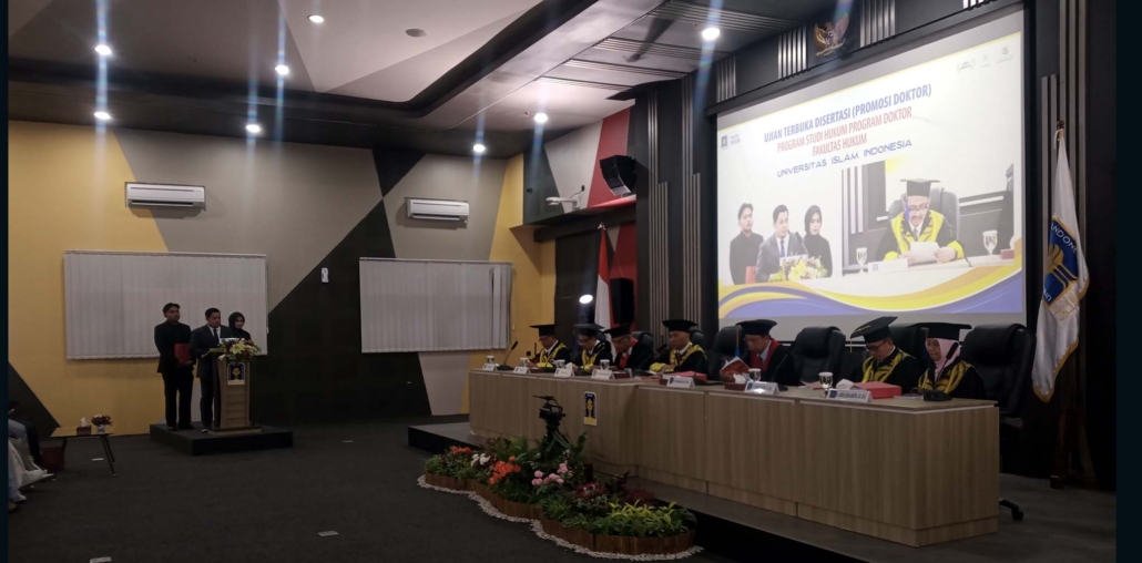 Sabtu, 29 November 2025, Pukul 13.00 WIB bertempat di ruang Audiovisual lantai 4 Fakultas Hukum Universitas Islam Indonesia, Bambang Sukoco berhasil memperoleh gelar Doktor yang ke 201 dari Program Studi Hukum Program Doktor Fakultas Hukum Universitas Islam Indonesia setelah mempertahankan disertasinya yang berjudul “Konseptualisasi Nidzomul Ma’had berbasis Hukum Profetik sebagai Sarana Perlindungan Hukum terhadap Hak-Hak Santri di Pesantren”.
