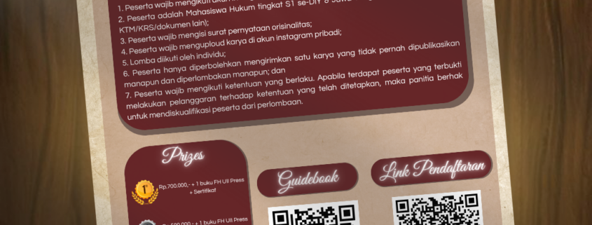 Lomba Resensi Buku FH UII Press 2025 resmi dibuka! Saatnya mahasiswa hukum se-DIY & Jawa Tengah menunjukkan ketajaman analisis, kreativitas akademik, dan kepedulian terhadap literasi hukum nasional ⚖