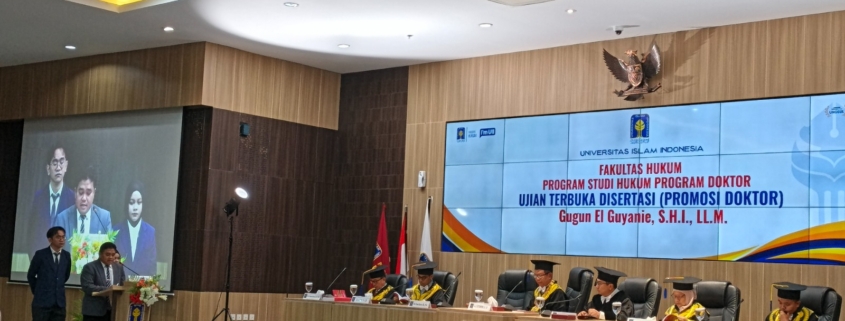 Gugun El Guyanie berhasil menyelesaikan disertasinya dibawah bimbingan Promotor Prof. Dr. Suparman Marzuki, S.H., M.Si., Co Promotor Dr. Idul Rishan, S.H., LL.M. Hadir sebagai penguji dalam ujian terbuka Prof. Dr. M. Syamsudin, S.H., M.Hum., sebagai ketua Penguji dan anggota penguji yakni, Prof. Purwo Santoso, M.A., Ph.D., Dr. Abdul Gaffar Karim, S.I.P., M.A., Prof. Dr. Ni’matul Huda, S.H., M.Hum., dan Dr. Jamaludin Ghafur, S.H., M.H.
