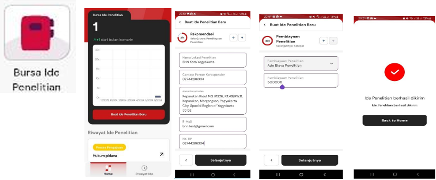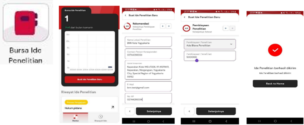 Fitur Bursa Ide Penelitian memberikan wadah bagi sivitas akademika untuk menyampaikan dan merekomendasikan ide-ide penelitian inovatif. Melalui formulir yang tersedia, pengguna dapat mengisi profil pengirim, menjabarkan topik atau ide penelitian secara rinci, memberikan informasi mengenai pihak yang direkomendasikan untuk korespondensi, serta menyertakan estimasi atau kebutuhan pembiayaan penelitian. Dengan adanya fitur ini, diharapkan tercipta kolaborasi riset yang produktif dan berkelanjutan.
